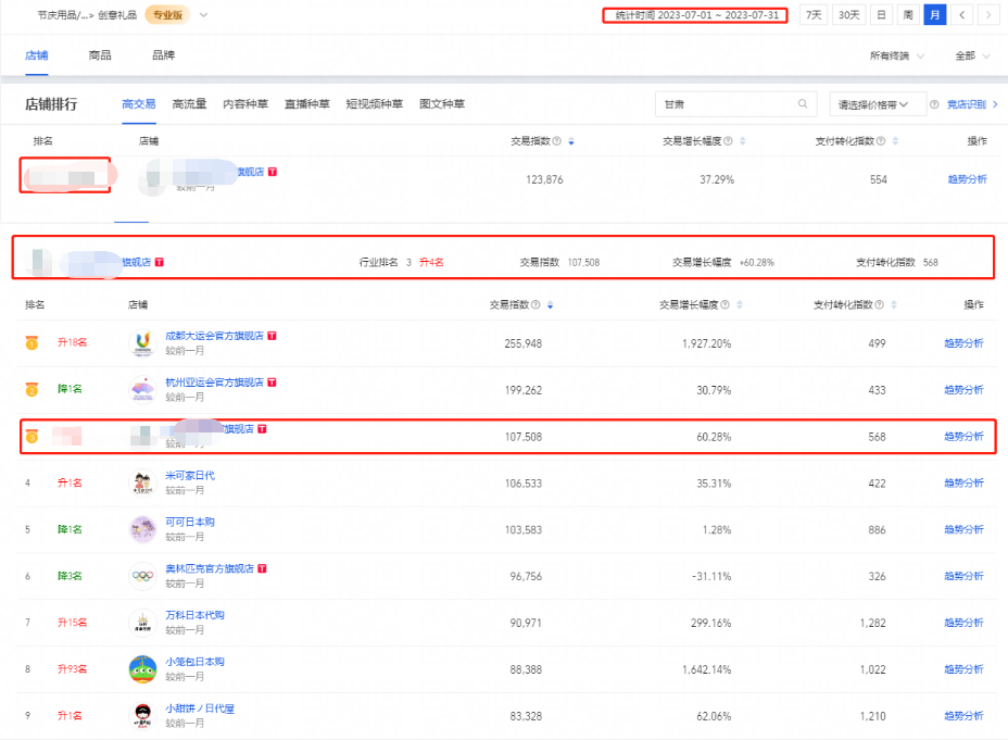 市場趨勢受亞運會、大運會、新年節日等影響會有所上升,日常屬于平穩存量狀態,壁壘明顯。想要獲得更多流量及曝光需要進一步擴充店鋪產品品類。