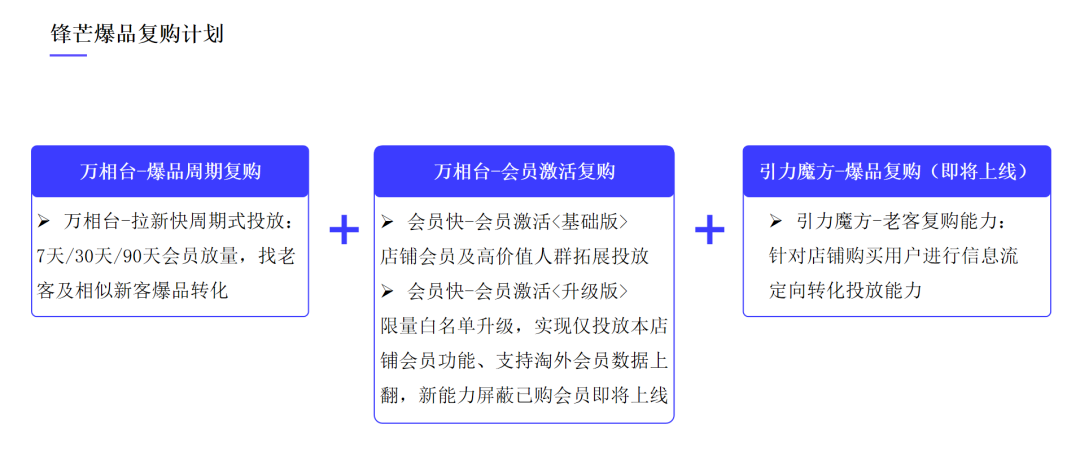第一,數(shù)智通全面升級(jí),數(shù)據(jù)分析助力消費(fèi)增長(zhǎng)。鋒芒計(jì)劃2.0針對(duì)健康、食品營銷提出“爆品復(fù)購計(jì)劃”,商家們可以主打薄利多銷的經(jīng)營策略,通過數(shù)智通快速獲得貨品結(jié)構(gòu)與人群特征,高效分配營銷預(yù)算,進(jìn)而定位店鋪的成長(zhǎng)階段,匹配相應(yīng)的運(yùn)營方案,讓每一步計(jì)劃都得到有效響應(yīng)。