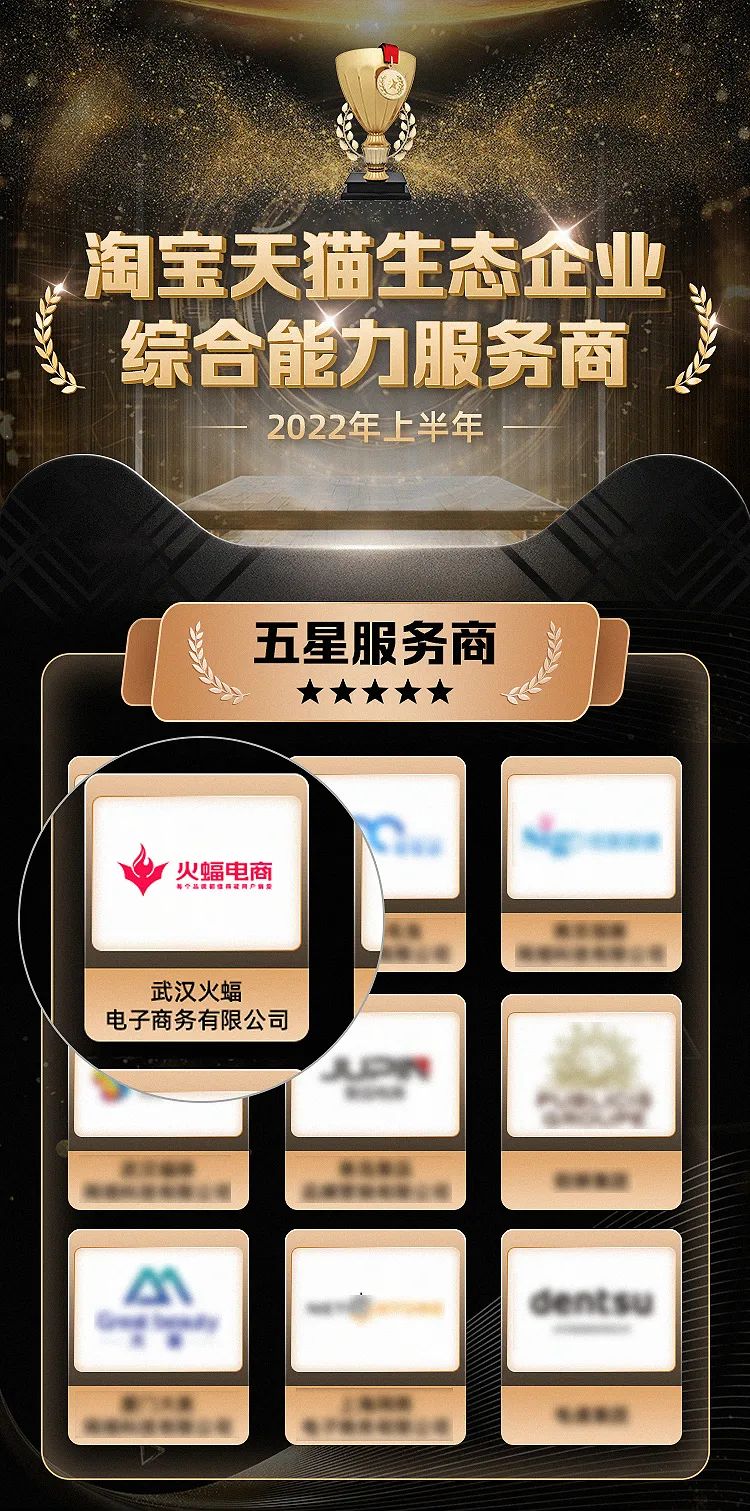 8月25日,《天貓?zhí)詫毶鷳B(tài)實(shí)驗(yàn)室發(fā)布暨2022年生態(tài)評(píng)級(jí)評(píng)優(yōu)頒獎(jiǎng)儀式》在上海舉辦,并公布了「2022年上半年天貓星級(jí)服務(wù)商」的評(píng)選結(jié)果。憑借專業(yè)、出色的運(yùn)營能力,火蝠電商再獲殊榮,這也是火蝠電商連續(xù)三年榮獲“天貓五星級(jí)服務(wù)商”。