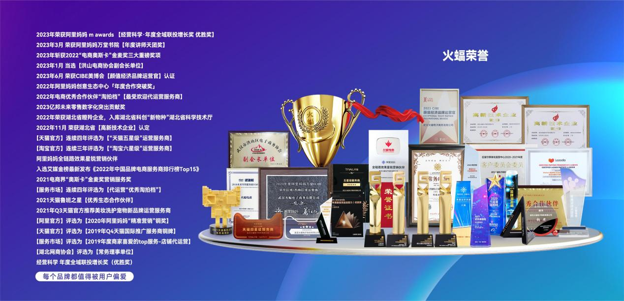 多年以來,火蝠電商始終定位于“國內優(yōu)秀品牌全生態(tài)價值增長服務專家”,多次蟬聯【天貓五星級】【淘寶六星級】運營服務商認證,常年與兩面針、綠源電動車等國內知名品牌達成合作關系,服務案例超過30000+個。未來,也將不斷提高對消費者需求的敏銳洞察和市場預測能力,專注精細化運營服務,持續(xù)獲得市場認可。