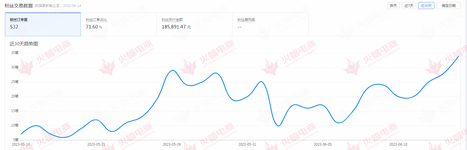 “目前,千元價位是家用打印機市場主流,但在二手市場,它僅需1/3左右的價格。另外,近兩年人們消費緊縮,手里資金不寬裕,所以與購買新機相比,二手機在價格和性價比上具有明顯優勢。”火蝠電商運營人員夢潔(花名)通過大量數據梳理了經營現狀,發現品牌主王勇(化名)作為源頭供應商,在價格上更能掌握主動權。團隊抓住用戶“節約和省錢”的消費心理,以更加低廉的價格迅速切入市場,持續吸引新客,在拉動銷售額增長的同時,為店鋪累積1W+粉絲,持續增加品牌資產。